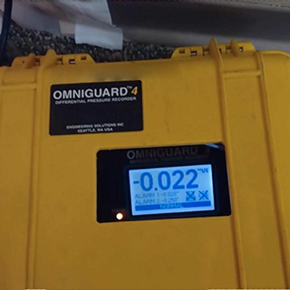 Raise sheeting to ceiling and apply to metal surface to create barrier.